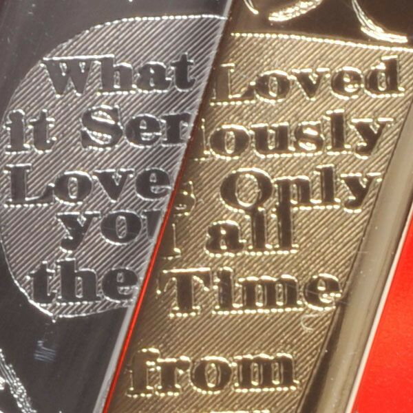 ■■■■■■■■■■■ 【彫刻に関しての説明】 ■■■■■■■■■■■ 文字内容は買い物ボタンを押して ステップ3まで進んだところに 備考欄がございますので その際に彫刻したい内容を記入してください サンプルと同じようにであれば 「サンプルと同じように」したいということを記入の上 差し替えたい部分の内容をご記入ください。